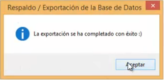 Para respaldar, solo basta con dar clic en el botón Respaldar / Exportar.